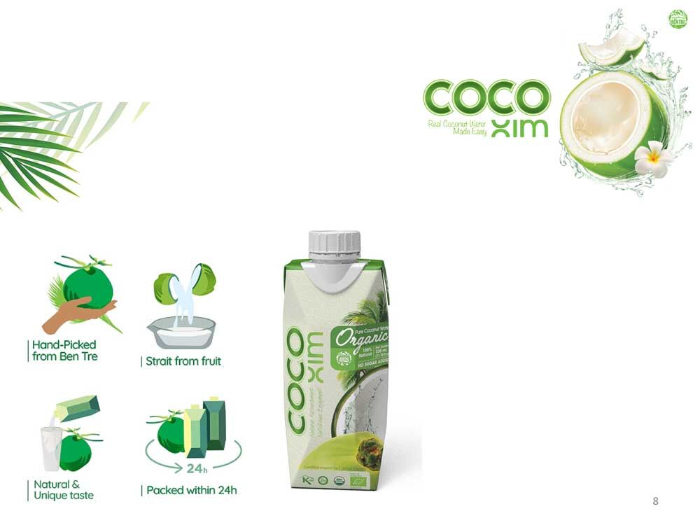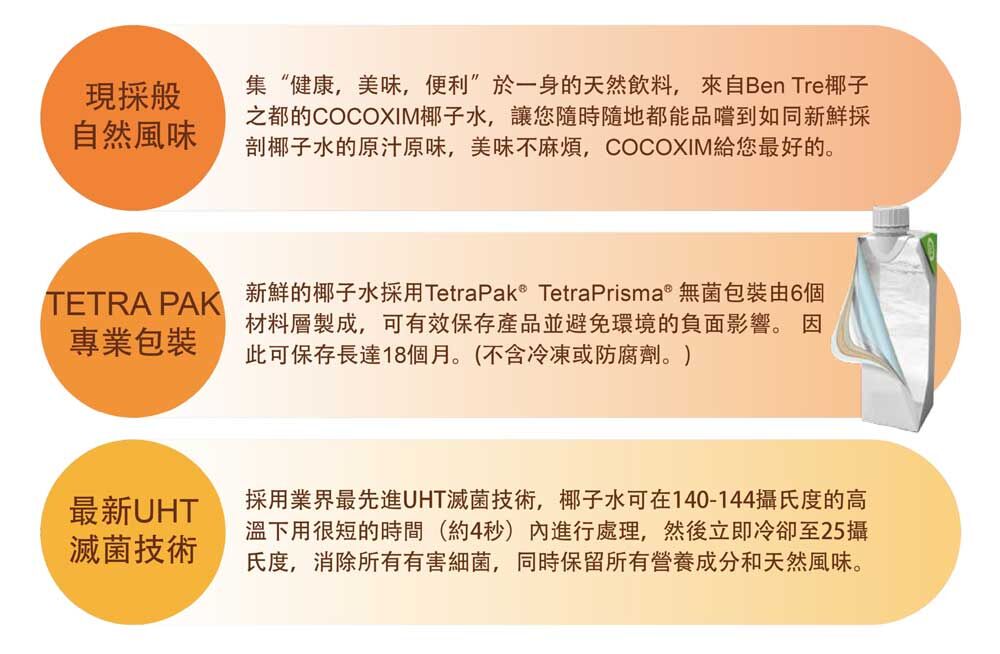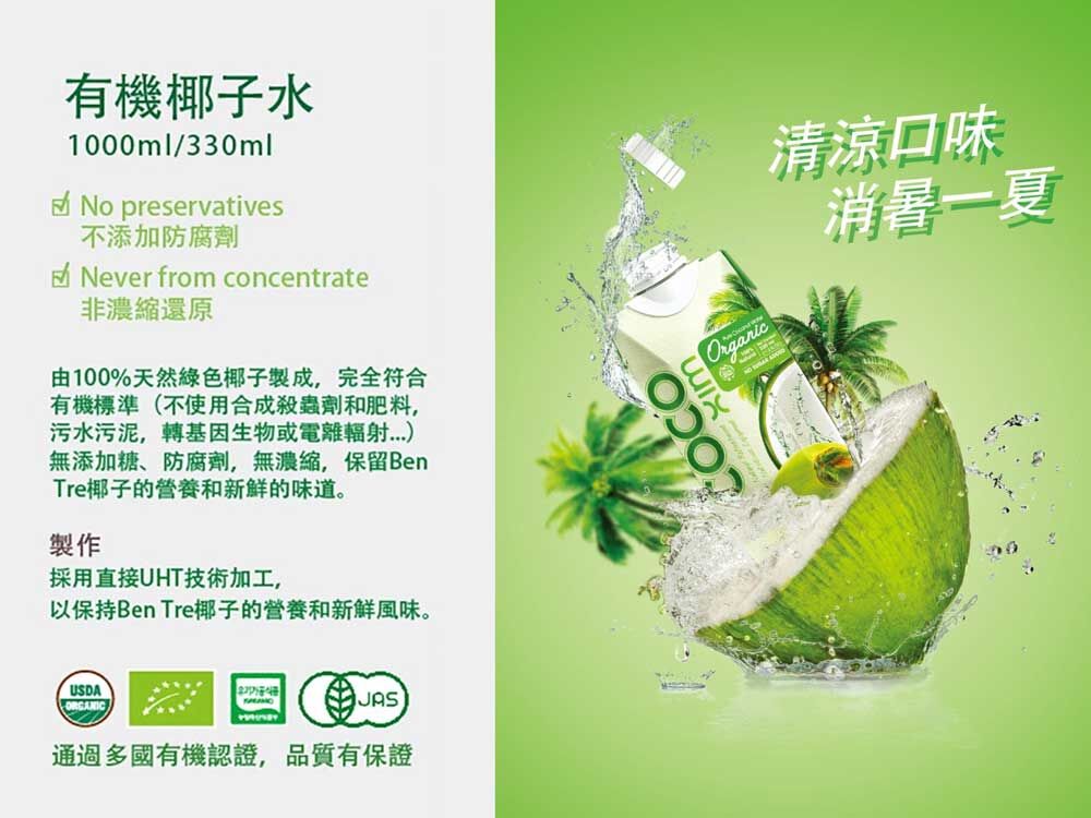 製作採用最新的UHT技術加工,以保持Ben Tre椰子的鮮甜味道,不會有一般罐裝椰子水的怪味。