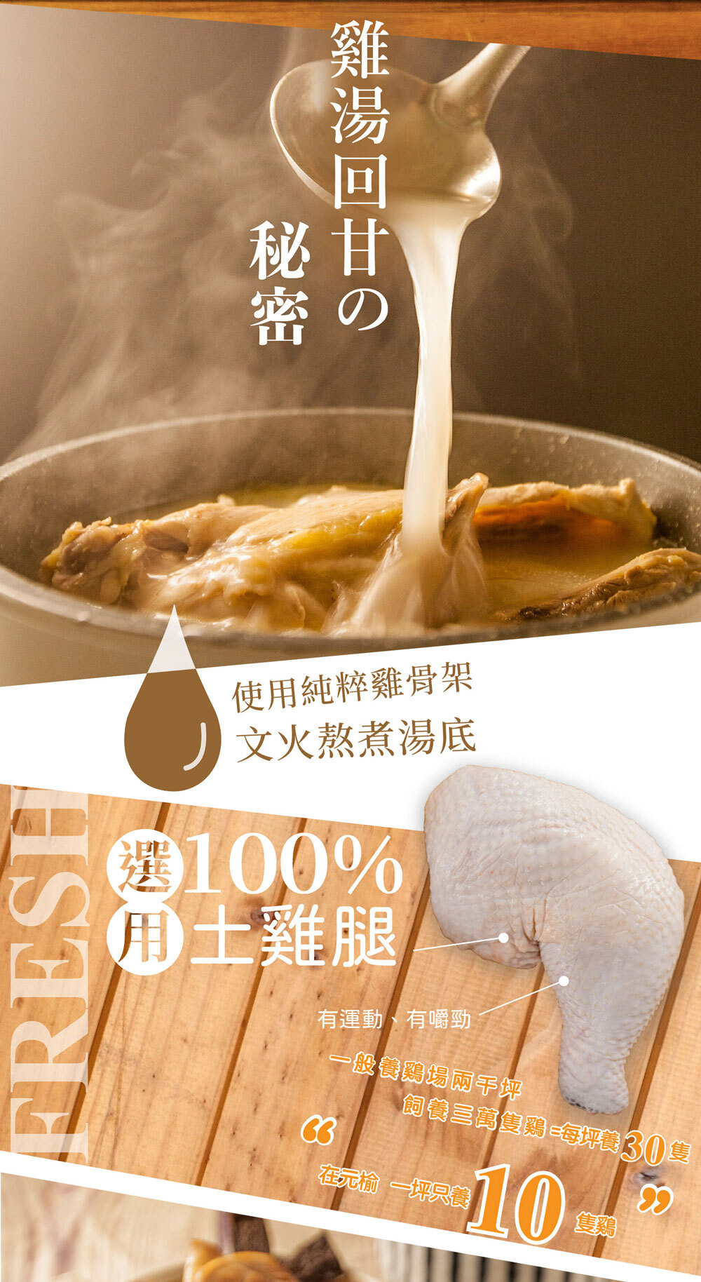 ・雞骨高湯慢燉8小時,湯頭清澈,口感卻濃郁滑順