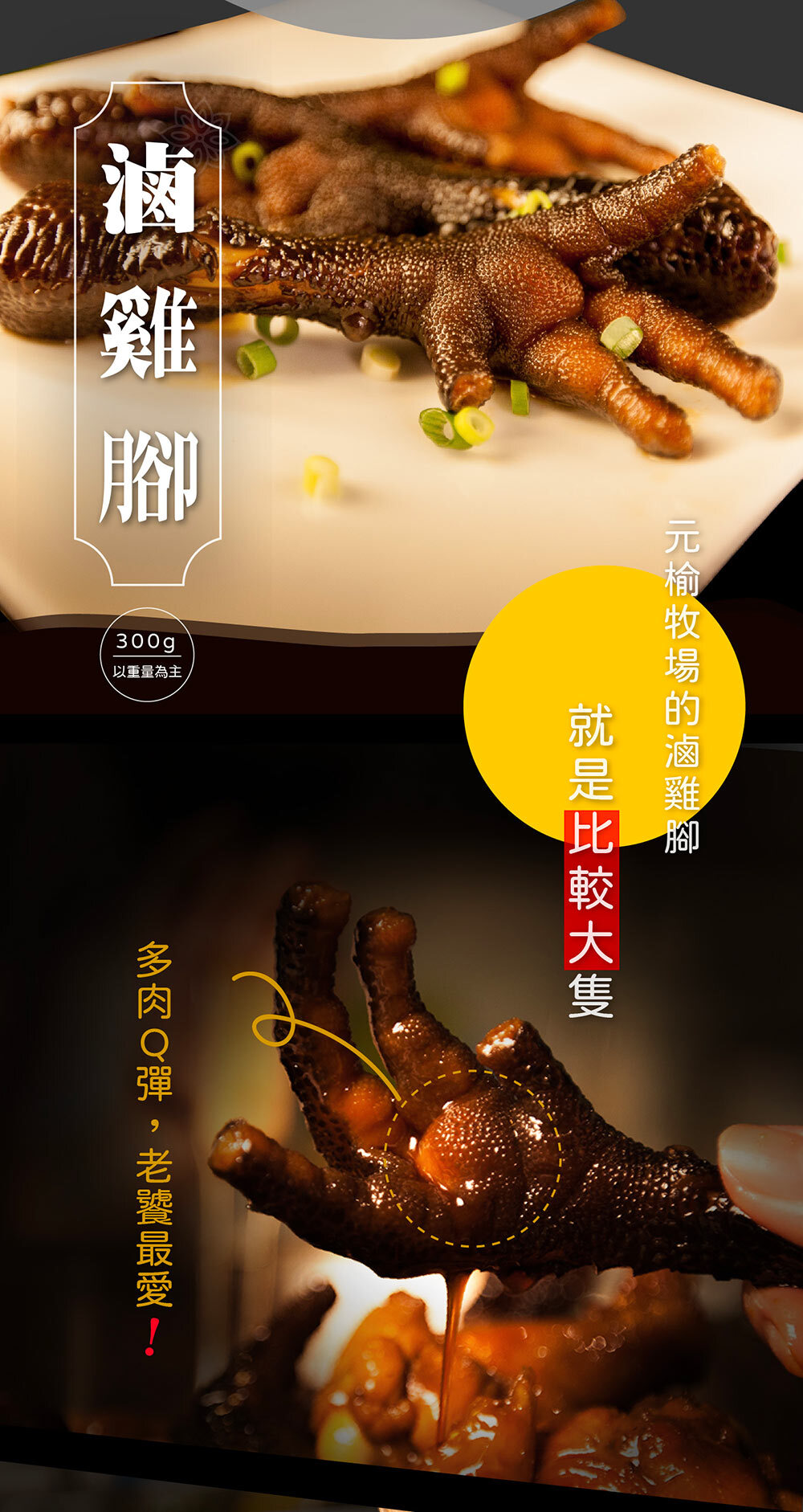✓ 元榆特製私房秘傳滷味系列, 有別於一般的雞腳,元榆牧場的滷雞腳就是比較大隻,香辣口味讓你啃起來更過癮!