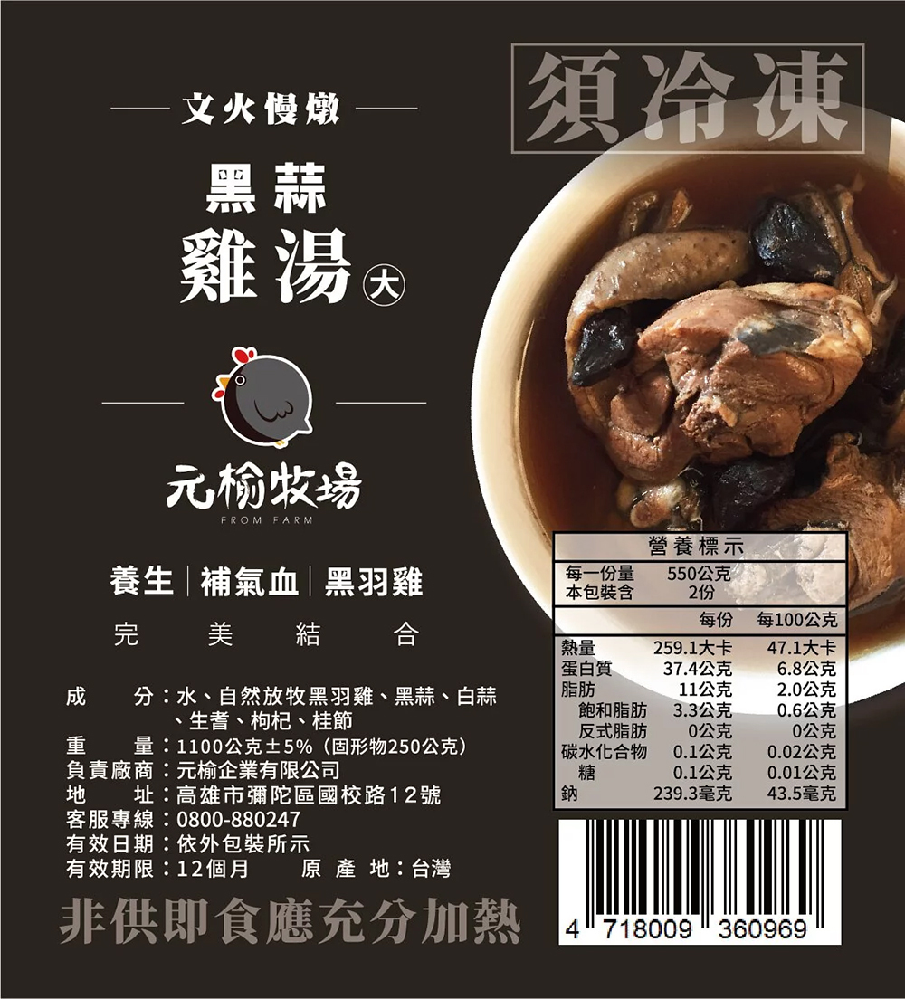 ✓ 元榆煲雞湯系列之黑蒜雞湯,使用發酵超過40日的臺灣黑蒜頭配上自然放牧黑羽土雞,湯品中的極品!