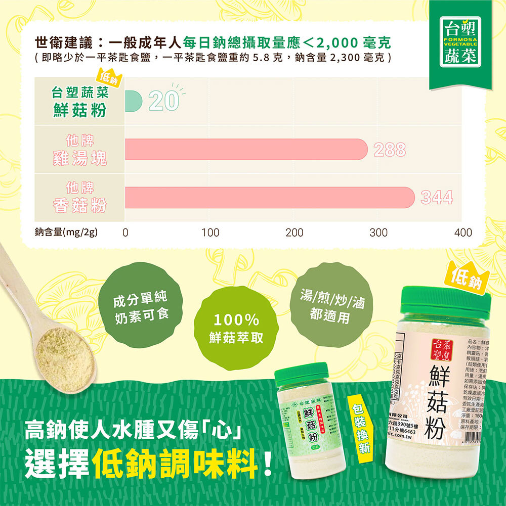 食用法:本品鮮菇粉食用後不會口乾舌燥,作為化學味精的替代調理品