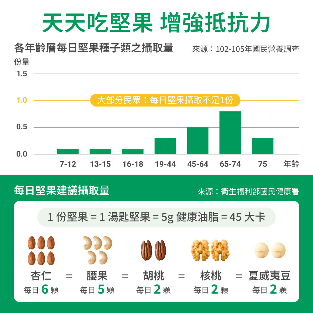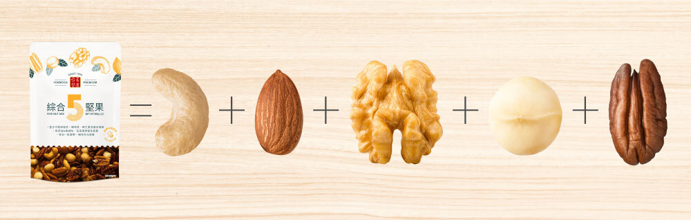 | 成份 | 杏仁果(美國)、核桃(美國)、腰果(緬甸)、胡桃(美國)、夏威夷豆(南非) |