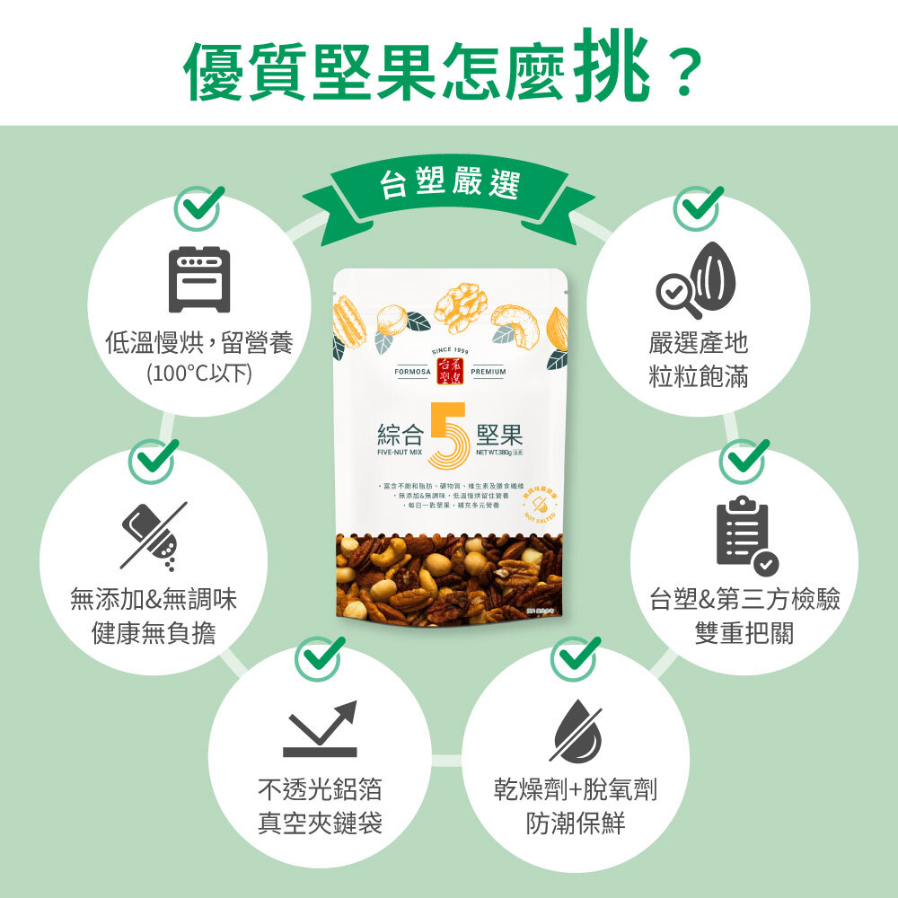 | 品名 | 【台塑蔬菜】綜合5堅果 |