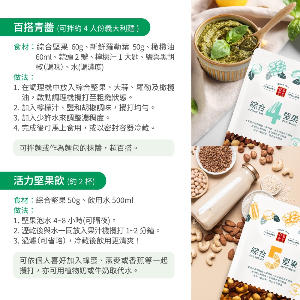 | 成份 | 腰果(緬甸)、杏仁果(美國)、核桃(美國)、夏威夷豆(南非) |