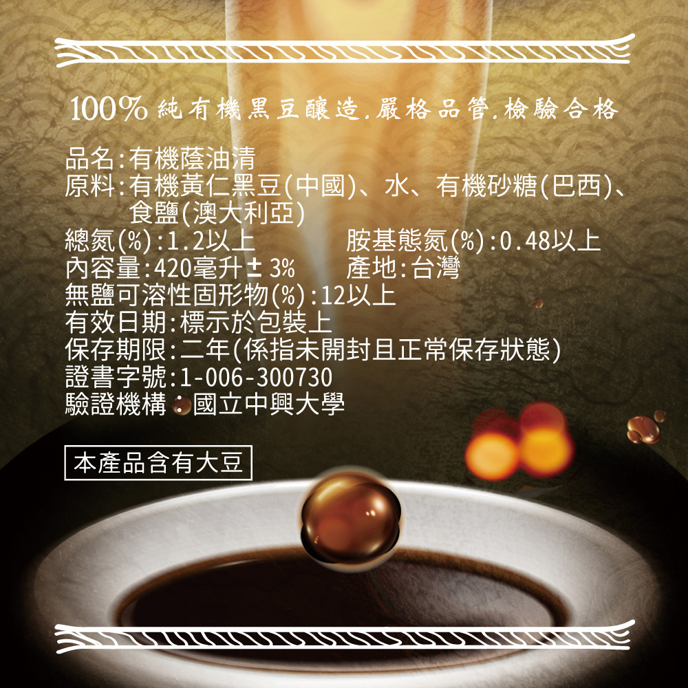 本醬油因不含防腐劑,開瓶後請冷藏保存,並儘早食用完畢。