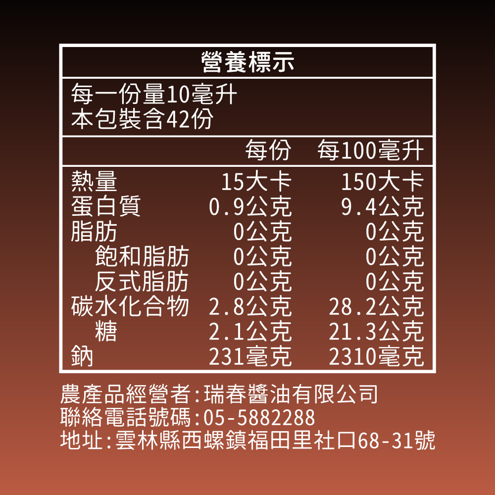 本醬油因不含防腐劑,開瓶後請冷藏保存,並儘早食用完畢。