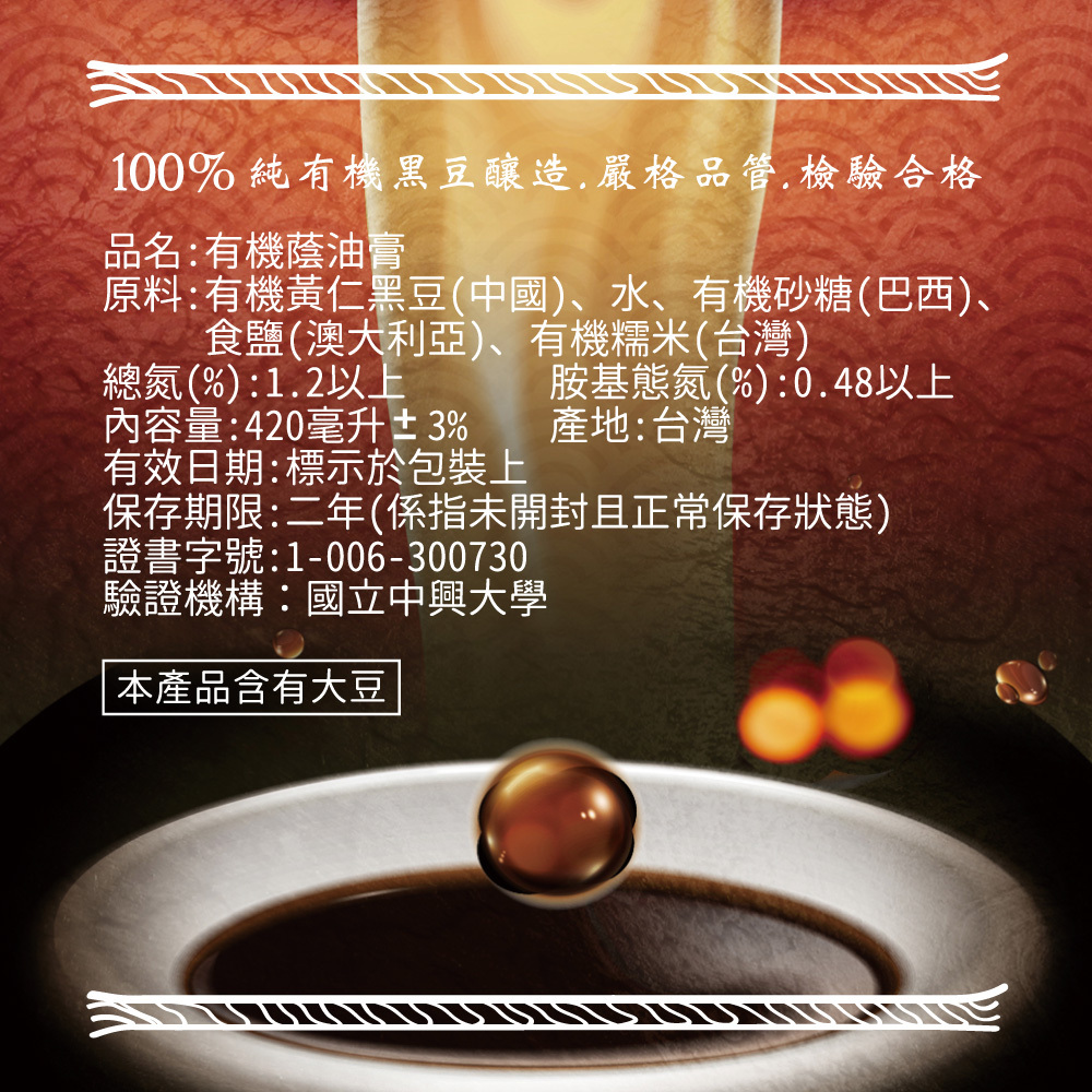 質地濃稠滑順、色澤深琥珀,鹹中帶甘、回味溫潤,是家常料理中提味、增色的好幫手。無論是拌、燒、滷、沾,都能讓料理更有層次。