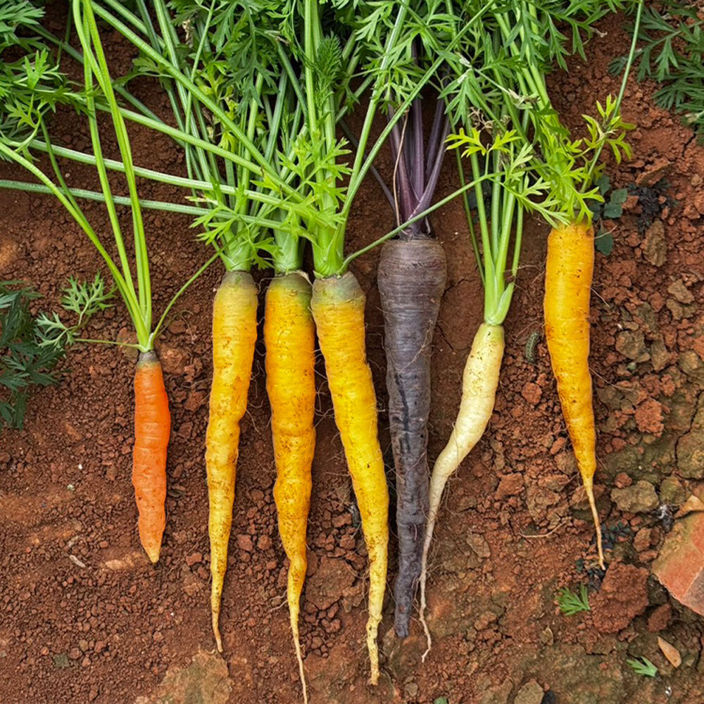 集合白、紫、紅、黃等不同色澤品種,色彩來自作物本身,切片後視覺層次豐富。
