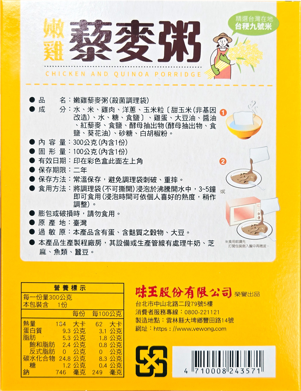 ✅ 使用台灣最好吃的良質米品種-台稉九號,米粒透明晶瑩有光澤,飽水度高,煮粥時黏稠度更勝一般白米。