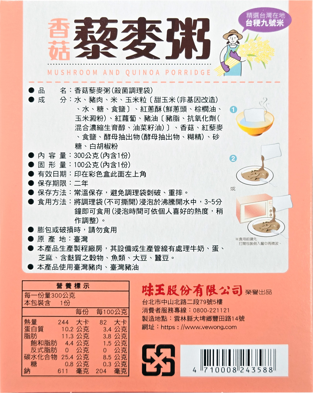 ✅ 使用台灣最好吃的良質米品種-台稉九號,米粒透明晶瑩有光澤,飽水度高,煮粥時黏稠度更勝一般白米。