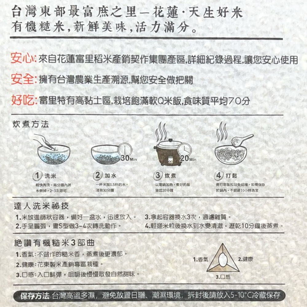 .來自花蓮富里產銷契作集團產區,地處花東縱谷中段,高黏土層富含豐富的有機質,種植出來的稻米,不論是口感、甜度、香味都屬米中極品。
