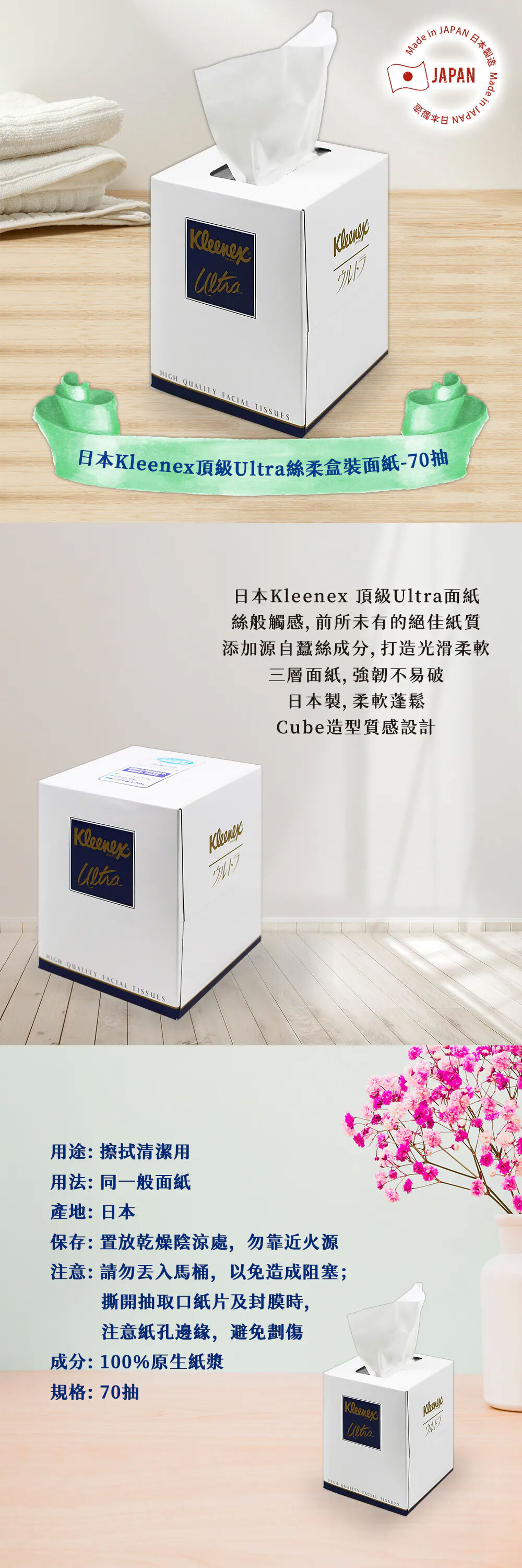 ■日本Kleenex頂級Ultra面紙,絲般觸感。前所未有的絕佳紙質