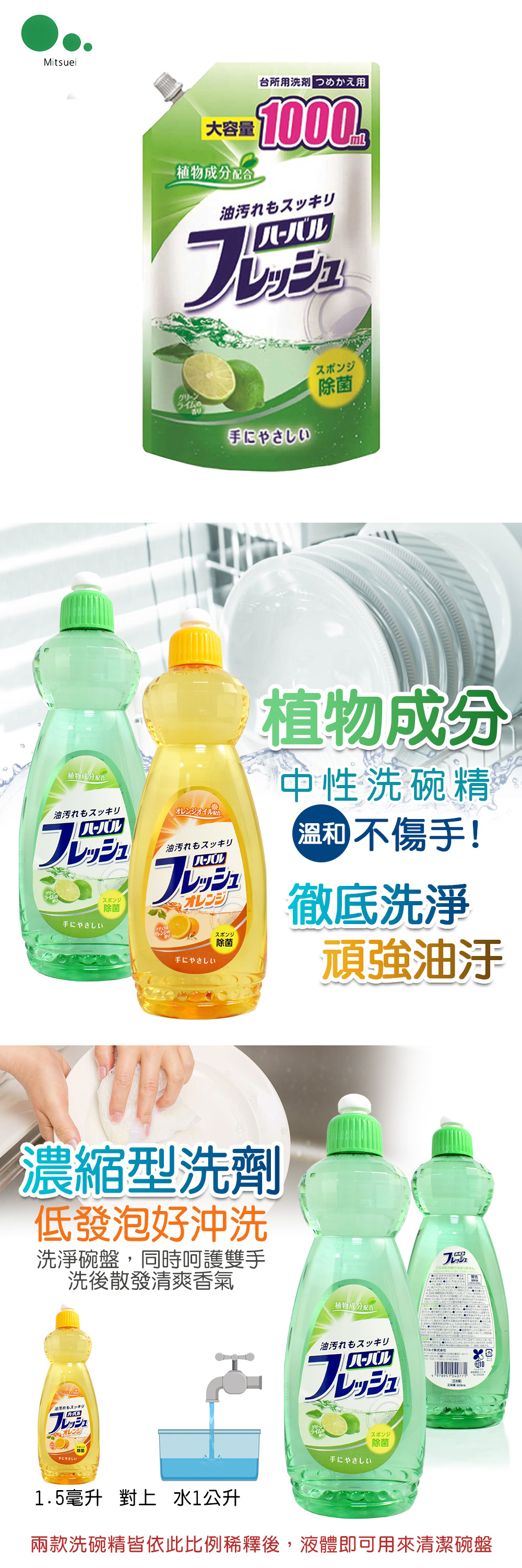 徹底洗淨碗盤上的油膩頑強污垢,易於沖淨不殘留心