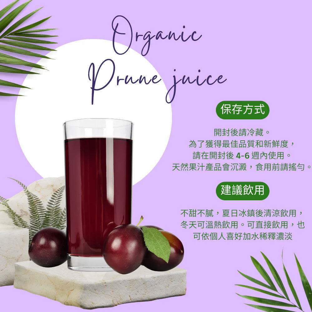 · 新鮮的加州有機蜜李(Prune)製作而成,純香的天然黑棗手勢。