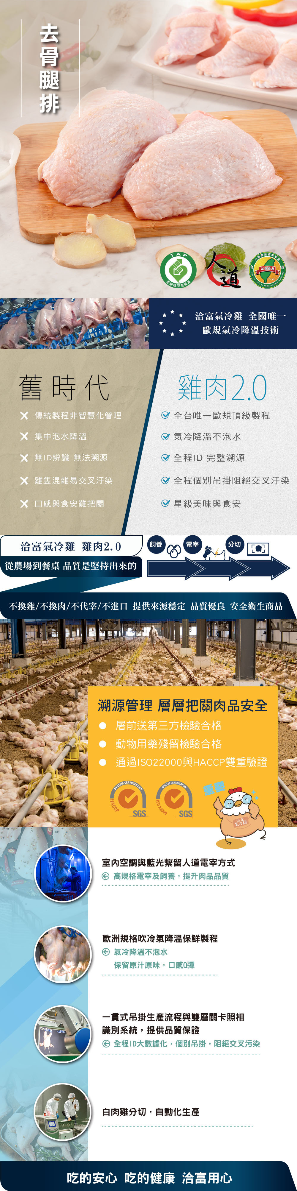 1.商品名稱:洽富氣冷雞-去骨腿排
