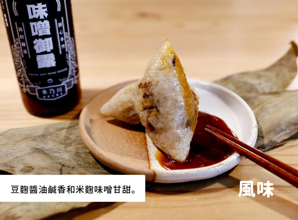 御鼎興X禾乃川國產豆製所聯手合作,選用台灣在地小農栽種,且透明可溯源的上等國產豆,經長時間細心手作,純天然古法釀酵法,味噌在木桶發酵三個月以上,醬油在陶甕日曝六個月以上,最後將味噌與醬油結合,再以大灶文火柴燒,集甘濃香醇為一體,淬鍊出全台灣唯一味噌御露油膏。