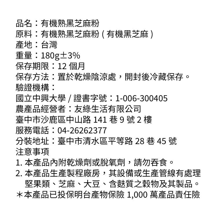 品名:有機熟黑芝麻粉