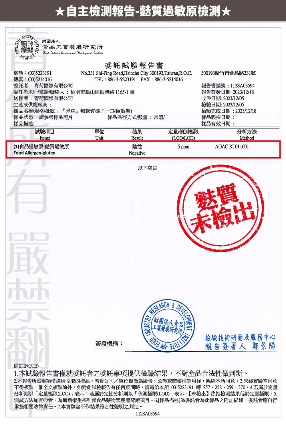 專業無麩質(Gluten Free)安心製程