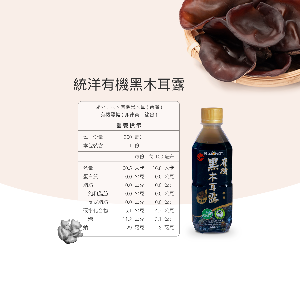 【統洋】有機黑糖黑木耳露(360ml*24瓶)