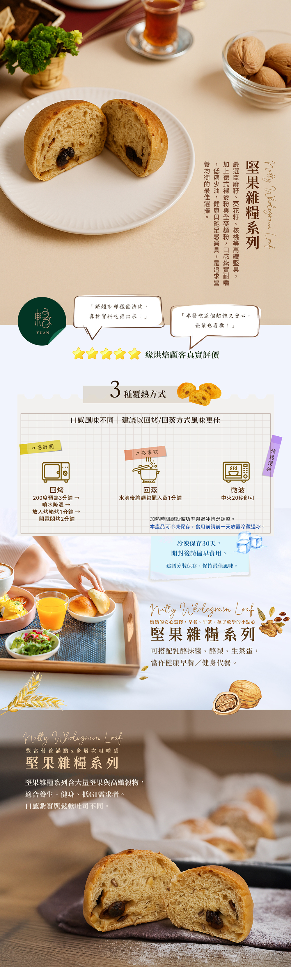 - 葡萄乾、燕麥片、核桃、亞麻仁,豐富的口感和營養。