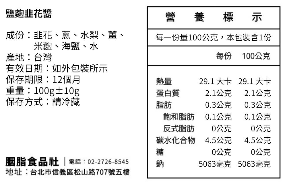 ▶️成分來源:韭菜花、蔥、水梨、薑、鹽麴。