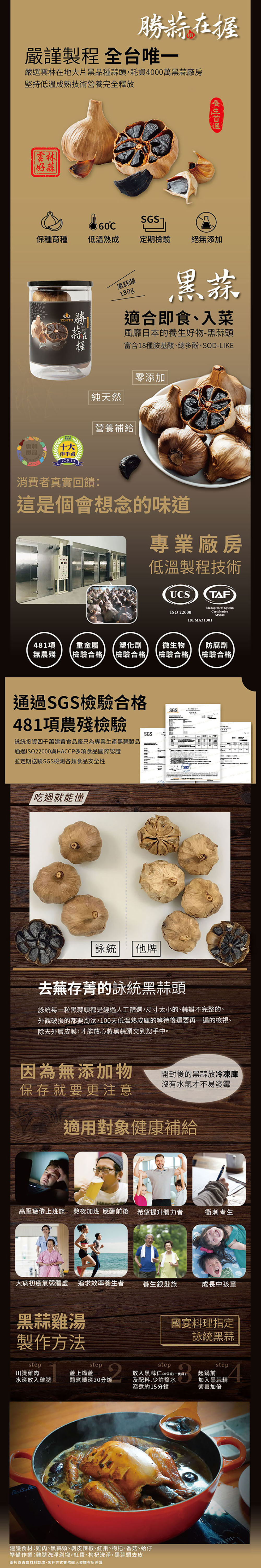 黑蒜是使用新鮮的白蒜,經2~3個月低溫控濕酶化發酵製成。