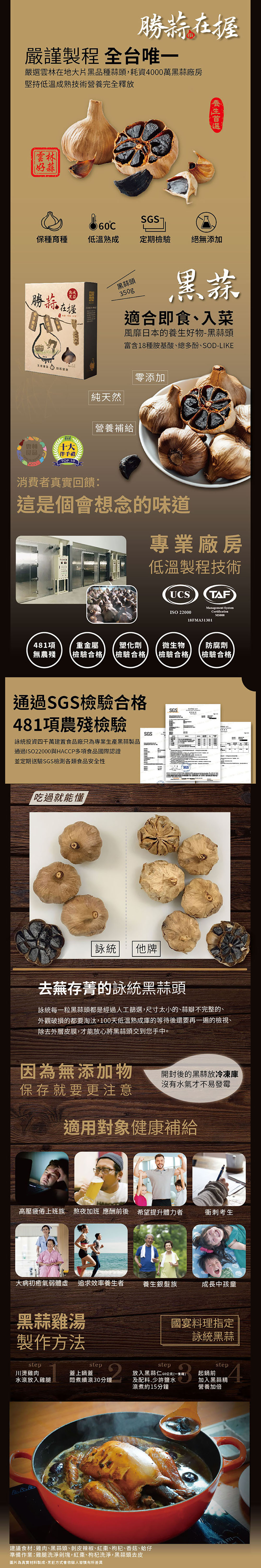 黑蒜是使用新鮮的白蒜,經2~3個月低溫控濕酶化發酵製成。