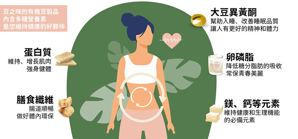・含、膳食纖維鈣、鐵等礦物質、大豆異黃酮、卵磷質及多種胺基酸